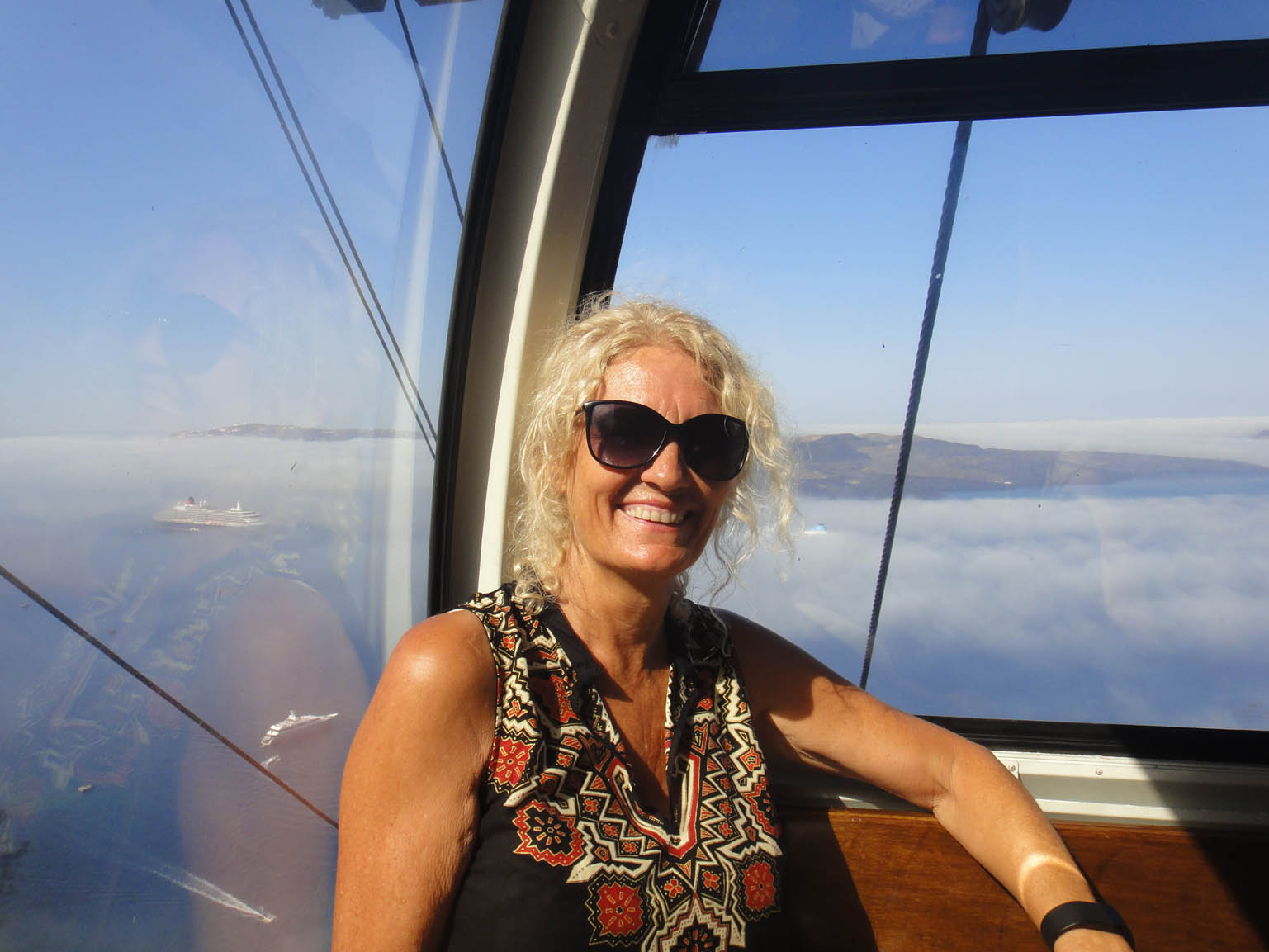 What a day! Santorini is essentially what remains after an enormous volcanic eruption that destroyed the earliest settlements on a formerly single island, and created the current geological caldera. A giant central, rectangular lagoon, which measures about 12 by 7 km, is surrounded by 300 m high, steep cliffs on three sides, it really is stunning. We arrived shrouded in fog, but that soon burned off to reveal the customary cloudless sky’s with little to no wind, another hot one.