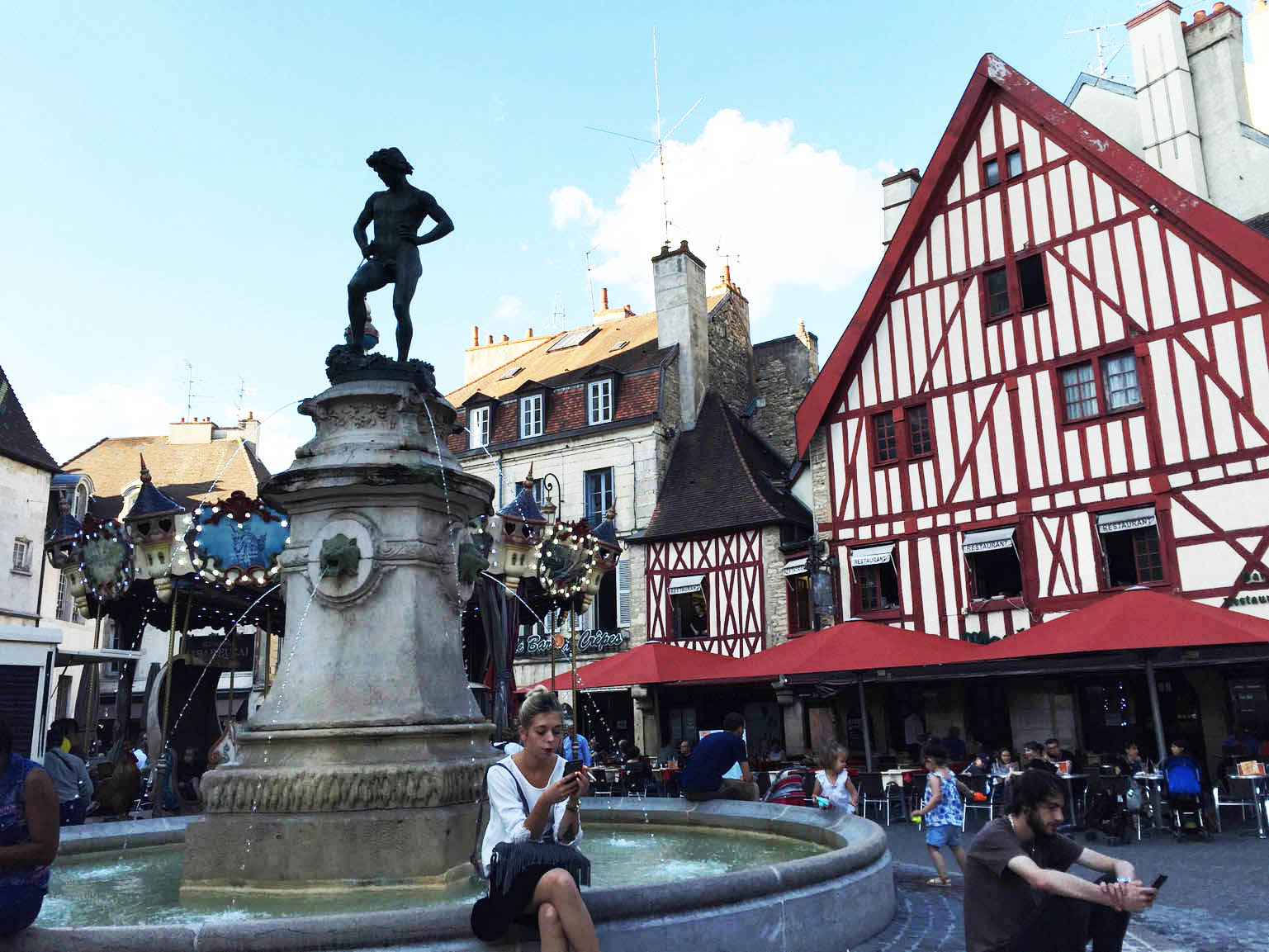 We arrived in Dijon at about 6pm and checked into our accomodation. Very nice, it is situated right in the centre of the old part of town. Di particularly likes it because it has a bath.